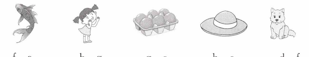 五、Look,circle and write. 看图,圈出图片所表示的单词的首字母,并在四线三格中写出该字母的大小写形式。