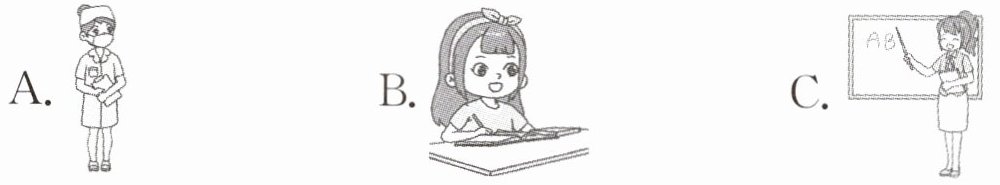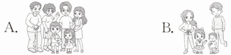 | 2. ______ | My name is Danny. I have a big family. Look! This is my grandpa. That is my grandma. My father is beside (在……旁边) my mother. Who's the girl? She's my sister. I love my family very much! |