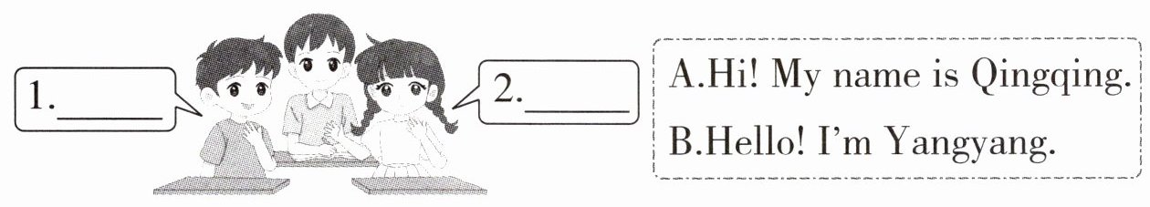 一、新学期伊始,阳阳和清清在做自我介绍。观察图片,为阳阳和清清选择相应的自我介绍句子,并读一读。