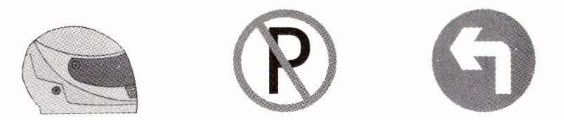 | D. Go straight. | E. Wear a helmet. | F. No parking! | G. Turn left. |