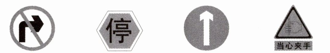 | A. Stop. | B. Don't turn right. | C. Don't touch the door. |