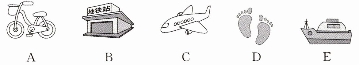 五、Read and choose. 从下面所给交通方式中为同学们选择最佳出行方式。
