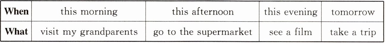 |What|visit my grandparents|go to the supermarket|see a film|take a trip|