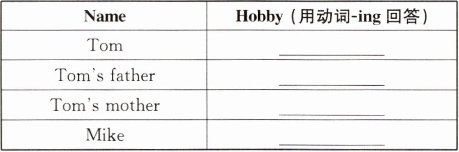 | Name | Hobby (用动词 -ing 回答) |