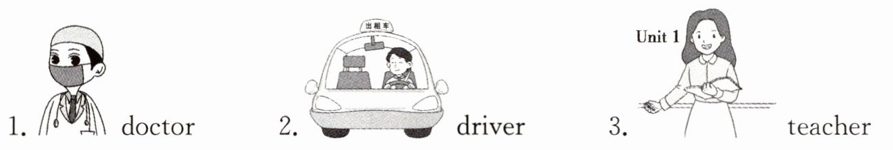 四、默读 Let's learn 部分的对话,仔细观察图片,猜测下列生词词义并写在横线上。