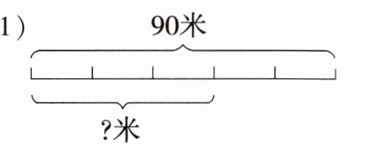 $2. (1)90 × \frac{3}{5} = 54($米$) (2)90 ÷ \frac{5}{7} = 126($米)
