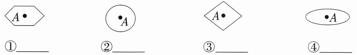 3. 想一想,试一试,填一填。将下面4个图形沿一条直线滚一滚,哪个图形中的 $ A $ 点留下的痕迹是直线?在其下面打“√”。