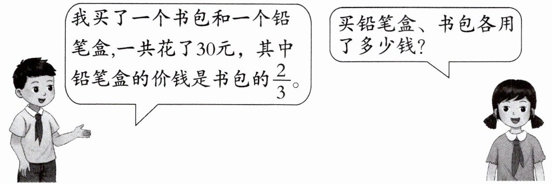 5.书包$:30÷(1 + \frac{2}{3}) = 18($元) 铅笔$:18×\frac{2}{3} = 12($元)