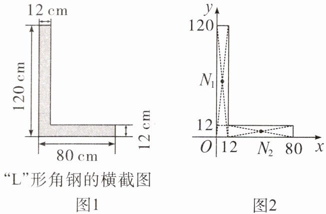 ).(2)设“L”型角钢横截面的重心坐标为$N(x,y)$,则$x = $