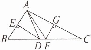 1. 如图,在$\triangle ABC$中,$DE垂直平分AB$,点$E$为垂足,$FG垂直平分AC$,点$G$为垂足,$BC= 5\mathrm{cm}$,则$\triangle ADF$的周长是(