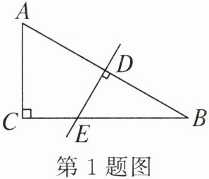1. 如图,在$\triangle ABC$中,$\angle C= 90^{\circ}$,$\angle B= 30^{\circ}$,$DE垂直平分AB$,分别交$AB$,$BC于点D$,$E$,且$DE= 2$,则$CE$的长是(
