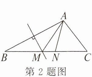 2. 如图,在$\triangle ABC$中,$BC= 6$,边$AB的垂直平分线交BC于点M$,点$N在MC$上,连接$AM$,$AN$.若$\angle C= \angle NAC$,则$\triangle MAN$的周长为