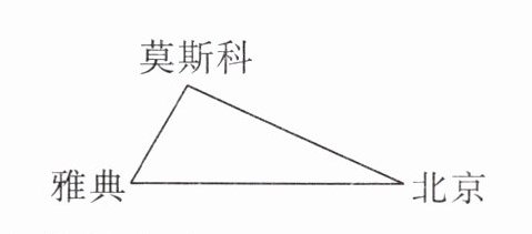 2. $2024年10月23日至24$日,第三届“一带一路”能源部长会议在山东举行,会议上提出了未来五年“一带一路”能源合作伙伴成员国的七方面计划.如图,北京、莫斯科、雅典三地之间想建立一个货物中转仓,使其到三地的距离相等,则中转仓的位置应选在(