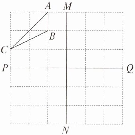 (2)画出$△A_2B_2C_2,$使$△A_2B_2C_2$和$△A_1B_1C_1$关于直线PQ成轴对称;