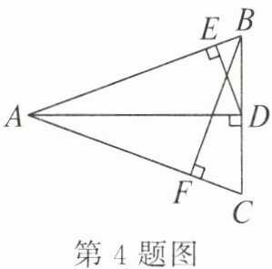 4. 如图,在△ABC中,AB= AC,AD⊥BC于点D,DE⊥AB于点E,BF⊥AC于点F,DE= 5 cm,则BF的长是(