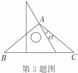 3. 在等腰三角形ABC中,AB= AC,∠BAC= 100°,一个含30°角的三角尺如图放置(一条直角边与BC边重合,斜边经过△ABC的顶点A),则∠α的度数为(