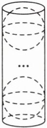 5. 如图,小明把 $m$ 个大小相同的网球恰好放进新买的圆柱形收纳筒中,则这个圆柱形收纳筒的体积是 $m$ 个网球体积之和的