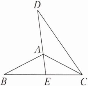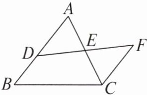 2. 如图,在$△ABC$中,D为AB上一点,E为AC的中点,连接DE并延长至点F,使得$EF= ED$,连接CF.