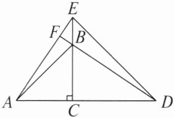 1. 把含有两个$45^{\circ }角的直角三角尺△ABC和△DEC$按如图所示方式放在一起,点B在CE上,点A,C,D在一条直线上,连接AE,DB的延长线交AE于点F.若$AE= 8,DF= 11$,则$△ABE$的面积为
