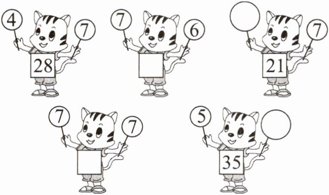 $5×7 + 3 =$ $4×7 + 2 =$