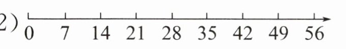 $7×8$表示$7$个$8$相加,从数轴上的数可以将$7$个$8$分成$5$个$8$与$2$个$8$相加(答案不唯一)。