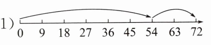 观察数轴可知,$8×9$表示$8$个$9$相加,从数轴上的分段可以看出,$8$个$9$可以分成$6$个$9$与$2$个$9$相加。