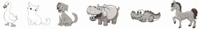 (2)河马的前面有(2 3)只小动物,后面有(2 3)只小动物。