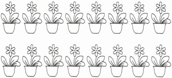 7 要想每排摆放的花盆数量相等,还可以怎么摆放?用“$◯$”代替花盆画一画。