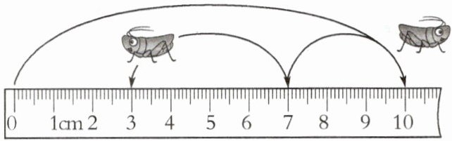 蟋蟀第一次向右跳了 10 厘米,第二次向左跳了 3 厘米,第三次又向左跳了()厘米,再向左跳()厘米就能跳回起点。