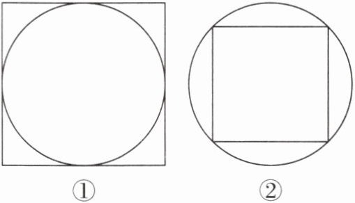 6. 《周髀算经》是中国古代数学著作之一,其中有一条最基本而重要的准则——规矩方圆之道。“方圆图”是外方内圆,“圆方图”是外圆内方。如图,两个圆的周长都是 31.4 cm,请你选择其中一个正方形,并求出它的面积。你选择的是______号图形中的正方形。($\pi$取 3.14)
