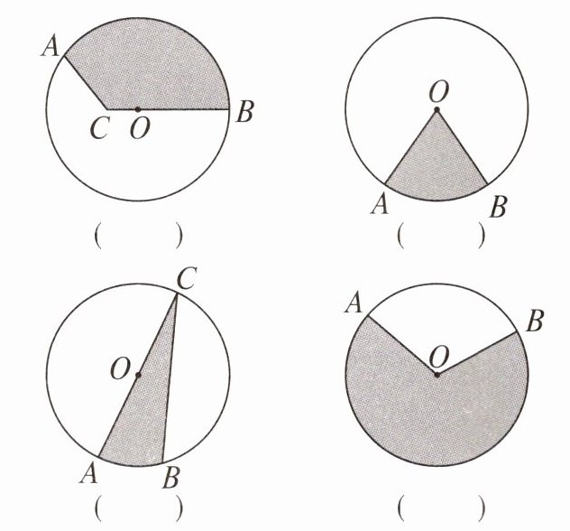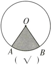 1. 观察下列图形,哪些涂色部分是扇形?在括号里画“√”。