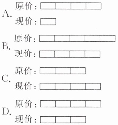2. 一件冲锋衣原价 $680$ 元,“十一”促销,现价比原价便宜 $25\%$。下面四幅图中,能表示原价与现价关系的是 ( )