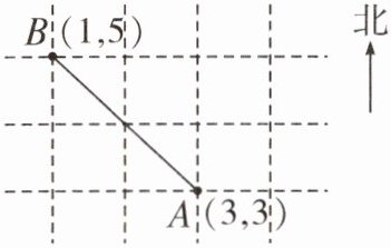 3. 如图,点 B 在点 A 的西偏北 $45^{\circ}$ 方向距离 $30$ m 处。若点 C 的数对是 $(4,4)$,则点 C 在点 A 的______方向距离______m 处。