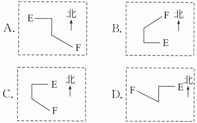 2. 小芳从 E 地出发,先向西,再向南,最后向东偏南 $40^{\circ}$ 走到 F 地,路线应该是 ( )
