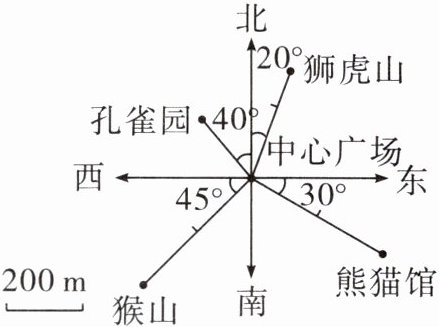 (2) 熊猫馆在中心广场____偏____ 30°方向上,距中心广场____m。