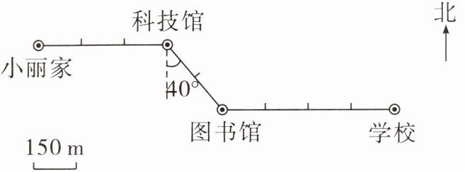 (1)小丽从家先向东走 450 m 到科技馆,然后向南偏东40°方向走 300 m 到图书馆,最后向东走 600 m 到学校。
