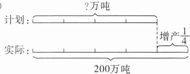 (2)计划: ?万吨 增产$\dfrac{1}{4}$ 实际: 200万吨