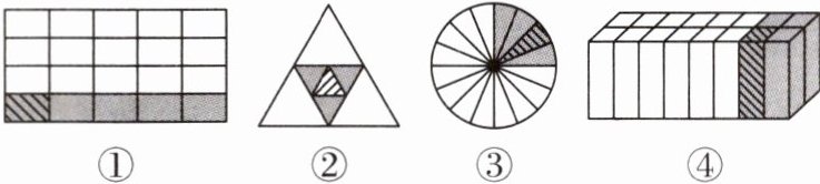 1. 下面能正确表示算式$\frac{1}{4} × \frac{1}{4}$的图是( )