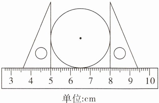 6. 如图,研究圆时,我们可以用这种方法找直径。这个圆的直径是____$\mathrm{cm}$,周长是____$\mathrm{cm}$。($\pi取3.14$)