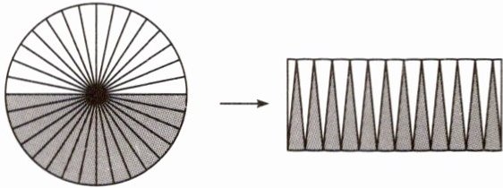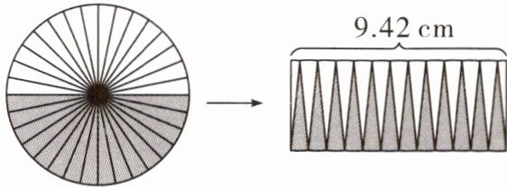 2. 如图,将一个圆沿半径剪开,拼成一个近似的长方形,那么圆的面积是______$ cm^{2} $。($ \pi $取 3.14)