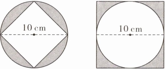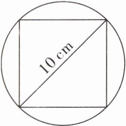 2. 如图,正方形的对角线是 10 cm,那么圆的半径是______cm,圆的面积是______cm^2。($\pi$取 3.14)