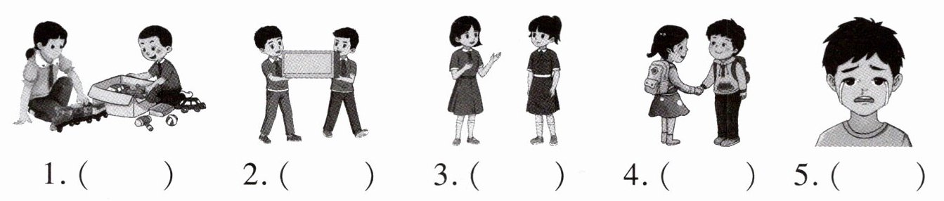 1.My name is Wu Binbin. 2.Nice to meet you too. 3.I am nice to my friends. 4.I listen with care. 5.I help friends and share my toys.