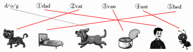 d/o/g ①dad ②cat ③can ④ant ⑤bed