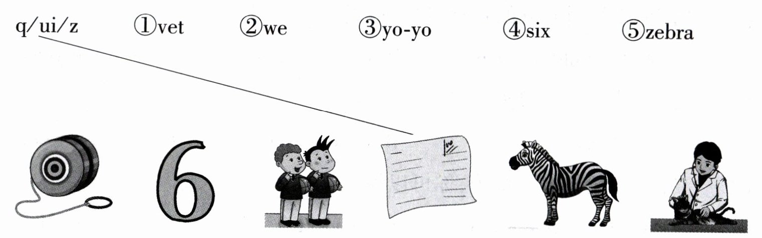 ①v/e/t ②w/e ③y/o/-y/o ④s/i/x ⑤z/e/br/a