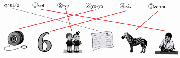 五、听录音,用“/”切分单词,并将单词与相应的图片连线。请先听范例。(10分)