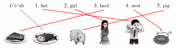 四、听录音,用“/”切分单词,并将单词与相应的图片连线。请先听范例。