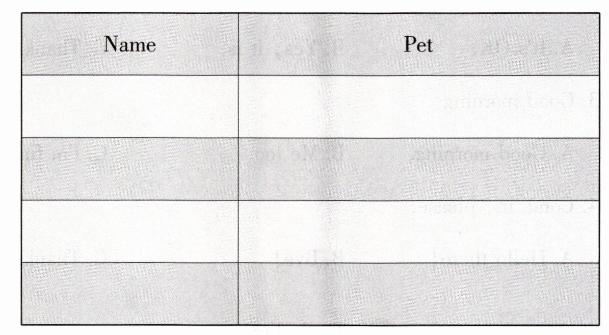 一、问一问,填一填。(小组成员使用参考句型进行问答,并作记录。)