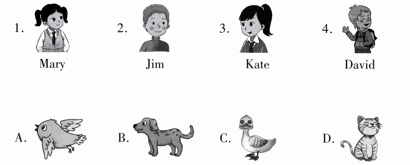 Kate: The duck is my pet. It's yellow. It has a big mouth.