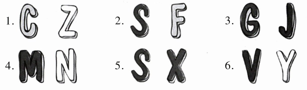 1. C 2. F 3. J 4. M 5. S 6. Y