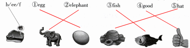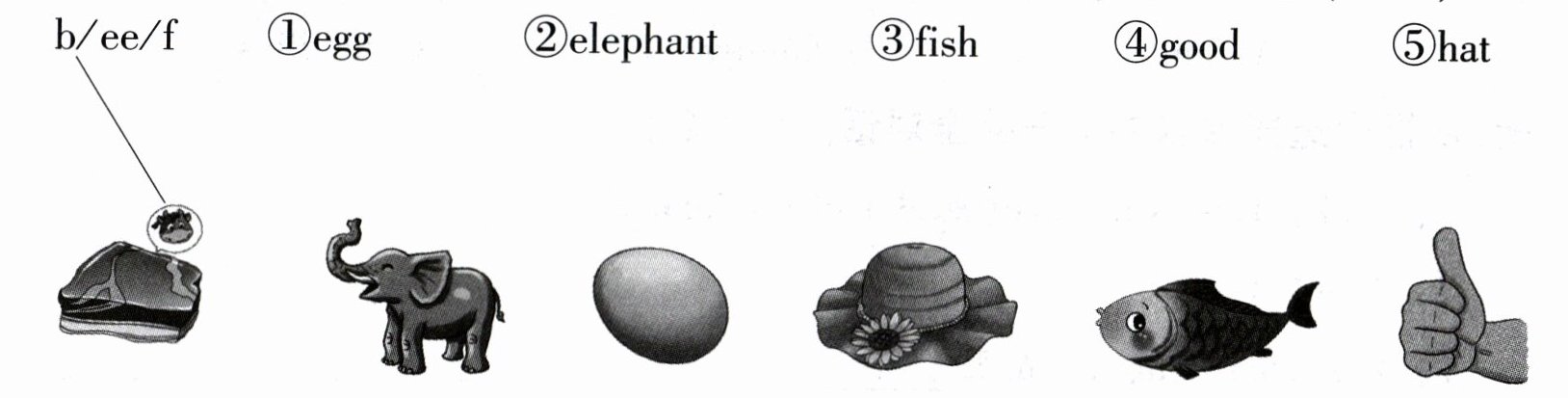 b/ee/f ①egg ②elephant ③fish ④good ⑤hat